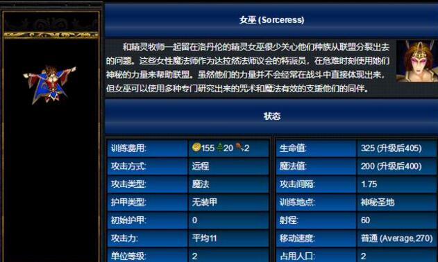 女巫是《魔兽争霸3》的人族兵种之一,除了能减速敌人之外,其核心技能“隐身”和“变羊”都是能搭配很多奇袭和高微操技巧的关键法术。然而,这个单位却和传统意义上的女巫(Witch)没有多大关系,Sorceress的含义并不是被认为和魔鬼有勾结的中世纪女巫,而是女性施法者——也就是《魔兽世界》里法师的概念。