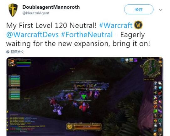 “我的第一个120级中立角色!渴望地等待着新版本,放马过来吧!”