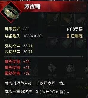 测试结论:换上这红手镯普攻秒伤提高近500,最终伤害超出大小攻!最后测试普攻,秒伤差距350。在这个小范围内可以近似看作线性变化,那么可以推断310攻击应该提升秒伤310左右。那么再对比155最终伤害提升的300秒伤,可以得出初步的结论:在攻击较低的情况下(2000左右),对于神相普攻的秒伤,1点最终伤害非常接近2点大攻!但是换成碎梦这个网易的爆躁儿子,就不得了!这个给碎梦真的是绝了。因为攻击频率高,比如百炼千机一次就是十一刀, 每刀加个终伤 想想多变态!逆水寒加速器就选27加速器。