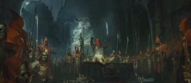 在怪物设计上,我们的老朋友异教徒他们平时会住在村庄里,晚上会在森林里进行邪恶的献祭仪式,因为暗黑4是个开放世界,有了这个前提,我们就可以知道那些异教徒从白天到晚上是如何转变的。