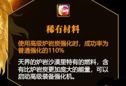 使用高级炉岩碳可以在凯丽处进行高级装备强化,强化成功率是普通强化的1.1倍。