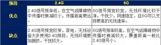现在我们家里使用的都是双频路由器,一个路由器同时发射出两个频段的WIFI信号(2.4G和5G)由于2.4和5G的频率不同,使用2.4Ghz频段的人越来越多,相互干扰的厉害,所以增加了5Ghz这个高频频段,且5G频段连接设备比较少,所以比2.4G传输速度要快一些。