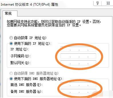 步骤同静态地址,最后一步选定在使用下面的地址、使用下面的DNS服务器的地址后,手工输入,确保同路由器LAN口在一个地址段即可。