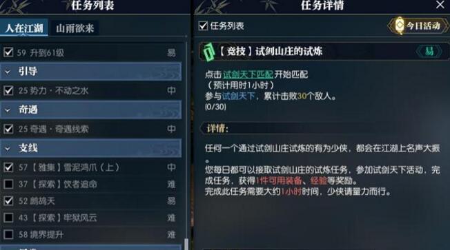 试剑,属于一个战场模式,多人VS多人,每场结束下来会给40点活跃度,每场15分钟!(这里要注意一点,近期更新过后想要在试剑里获得活跃度,没有办法挂机了,如果是后面20%的玩家是没有活跃度的,所以需要去打架!杜绝一部分工作室靠这个挂机刷活跃度!)本人每天都要去打上一场或者两次才够把日常获得铜币的任务做完。个人是推荐的,轻轻松松就拿到了,特别是奶妈!(xw20180809001)