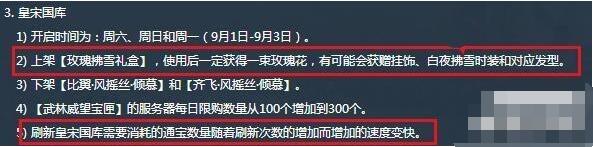 简单解读一下这条公告:上架【玫瑰拂雪礼盒】礼盒内包括玫瑰花一束必得、挂饰有概率得、白夜拂雪时装和对应发型有概率得!