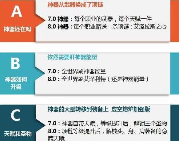 但是,至少切天赋的时候不用那么痛苦了。军团版本,每个职业的每一套天赋都有一把特定武器,每把武器的神器能量都不通用,就造成了一个问题,玩家没办法自由的去切换天赋。举个很简单的例子,盗贼。军团版本大家都知道狂徒贼aoe巨猛,但是单体能力很一般。刺杀贼单体很强但是几乎没有aoe能力。打大秘的时候,小怪周需要狂徒贼,boss周需要刺杀贼。但是同时肝两个神器实在是太累了,这还是不考虑核心橙的前提下。算上核心橙就更夸张。